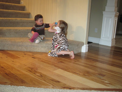 Brynlee has also been cracking me up lately, she has quite the motor mouth and although most of what comes out of it is quite entertaining, it can get wear on the nerves a little if you know what I mean. Espeically when she asks you for the 90th time if you would like to hear her "meow" Follow The Prophet instead of singing it, you can say no but by the time you do she'll already be meowing through the first verse. Poor Brady, if he thinks he'd like to go home for some peace and quite after work, he's bound to be disappointed. By the time he gets home Brynlee and I are both just dying to talk to him! This morning I took Brynlee and Nash to the dentist. Brynlee was really excited about it and just reeving to go when the hyginest came and took us back. I think Brynlee had asked the dental hyginest, Tracy, 4 or 5 questions before she even sat on the chair and she also gave her all of her personal history like that she's four but she'll turn 5 on November 1, then she gets to go to preschool, but did you know I already lost a tooth? So she had to recount the story of how she knocked her tooth out to Tracy. Tracy told Brynlee she was going to do two x-rays of the front and two x-rays of the sides of her teeth. Bryn said, that makes four. Tracy, not knowing what she was getting into said, wow you're really smart. As soon as she said it, I knew Brynlee was thinking, "I better show her how smart I really am." So she started counting the cars that passed out the window, explaining the slug bug game, and regurgitating important information like what you should and should not eat to have a healthy strong body, "and also did you know that a tomato is actually a fruit, but most people just call it a vegtable?" (She learned that from Sid the Science Kid, not from me.) Bryn, "I have a fish tongue." Tracy,"You mean a fish tank at home?" Bryn, "No look at my tongue, (wiggling it back and forth) my tongue looks like a fish." It was about this point that the lady sitting behind the front desk popped her head in and said, wow she is really a talker! I knew they were probably thinking I gave her way too much Easter candy yesterday, but really I was enjoying watching someone else listen to her. I tried to get her to quiet down long enough for Tracy to clean her teeth between comments. My favorite was when she told Tracy, "Did you know my Dad won't change Nashies diapers anymore? He says Nash has too much poo so my mom has to change ALL of them! She really needs someone to help her because that's a ton of diapers!" That's my girl! Nash had the oppisite problem, we couldn't get him to open his mouth. As we were preparing to leave Brynlee said, "I heard you have treasure box here?" Tracy took her to the box and gave her two prizes, I think she was excited to have her ears stop ringing.